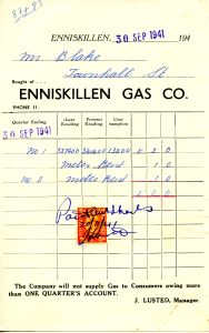 "Receipt, Enniskillen Gas Company, Enniskillen"