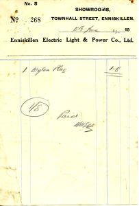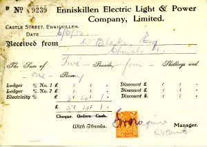 "Receipt, Enniskillen Electric Light & Power Company, Enniskillen"